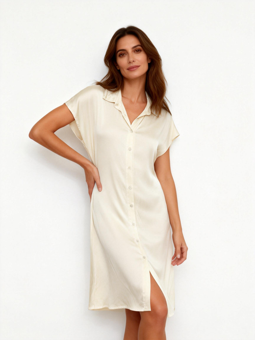 Abito chemisier lungo in satin fluido